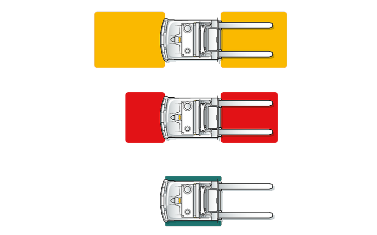 Opsežni sigurnosni senzori štite čoveka, mašinu i teret. Automatski vođena vozila (AGV) putuju samo na rutama koje su im dodeljene. Ipak, mogu postojati situacije u kojima zaposleni nehotice pređe rutu. U ovom slučaju, opsežan bezbednosni sistem sa sertifikatom CE će inicirati trenutno kočenje. Ključna komponenta sistema su senzori za ličnu zaštitu – opremljeni upozorenjem i zaštitnim poljem – koji stalno prate direktne rute AGV-a. Ako osoba uđe u polje upozorenja, viljuškar odmah usporava. Ako osoba ostane da stoji, staje, dok se kontrolnom centru šalje signal koji ukazuje na blokiranje viljuškara.